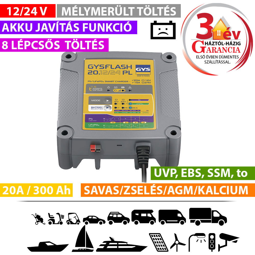GYSFLASH 20.12/24 PL akkumulátor töltő