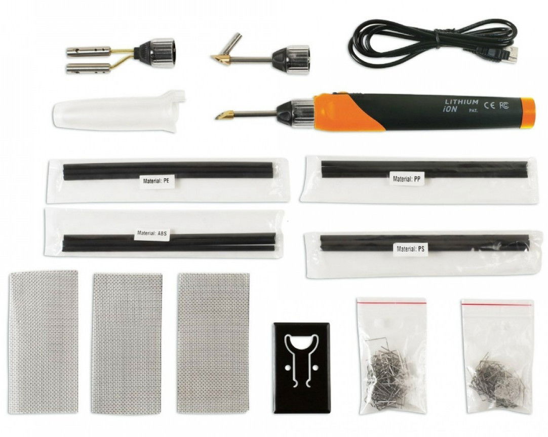 • Műanyaghegesztő készlet, amely négy különböző típusú műanyag hegesztőpálcával van kiegészítve, amelyek alkalmasak kisebb törött vagy repedt műanyag alkatrészek, mint például tükrök, lökhárítók, sárvédő betétek, stb. javítására.